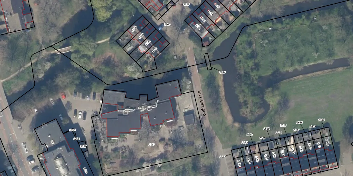 Het perceel waarop Sri Lankapad 1 staat heeft een oppervlakte van 2465 m². Dit is een zeer groot perceel. De perceeloppervlakte wordt geregistreerd door het Kadaster. Gedetailleerde informatie over de maten van dit perceel kunt u vinden in het rapport Kadastrale kaart met maatvoering van Sri Lankapad 1.