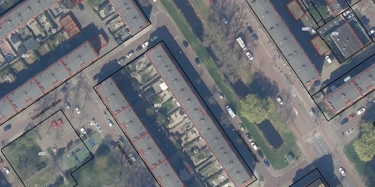 Het perceel waarop Staalmeesterstraat 24 staat heeft een oppervlakte van 4009 m². Dit is een zeer groot perceel. De perceeloppervlakte wordt geregistreerd door het Kadaster. Gedetailleerde informatie over de maten van dit perceel kunt u vinden in het rapport Kadastrale kaart met maatvoering van Staalmeesterstraat 24.