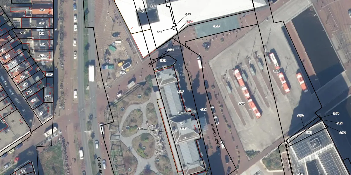 Stationsplein 8 is gelegen op kadastraal perceel DEL00O3330. Deze kadastrale aanduiding is uniek en wordt gebruikt door het Kadaster om eigendomsrechten en andere zakelijke rechten vast te leggen. Het perceel maakt onderdeel uit van de kadastrale gemeente Delft.