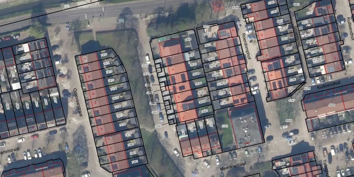 Gebruik de zoekbalk of klik op een perceel voor informatie over de adressen binnen dit perceel.