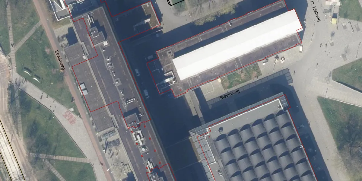 Het perceel waarop Stevinweg 4 staat heeft een oppervlakte van 18,3 ha. Dit is een zeer groot perceel. De perceeloppervlakte wordt geregistreerd door het Kadaster. Gedetailleerde informatie over de maten van dit perceel kunt u vinden in het rapport Kadastrale kaart met maatvoering van Stevinweg 4.