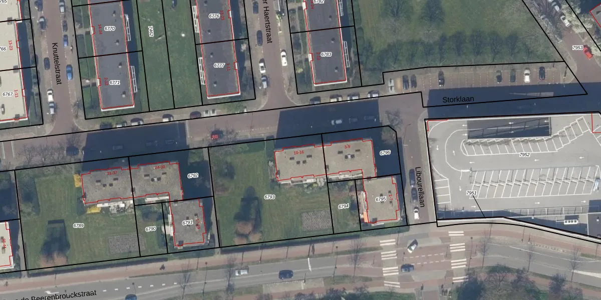 Storklaan 14 is gelegen op kadastraal perceel DEL00F6793. Deze kadastrale aanduiding is uniek en wordt gebruikt door het Kadaster om eigendomsrechten en andere zakelijke rechten vast te leggen. Het perceel maakt onderdeel uit van de kadastrale gemeente Delft.
