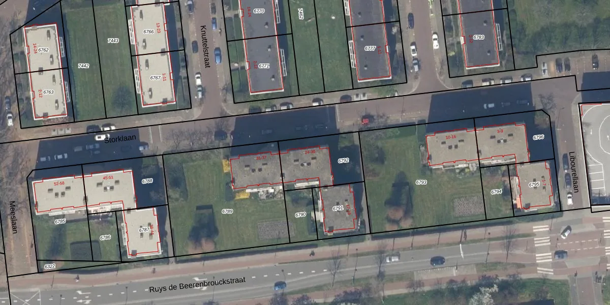 Het perceel waarop Storklaan 28 staat heeft een oppervlakte van 437 m². Dit is een groot perceel. De perceeloppervlakte wordt geregistreerd door het Kadaster. Gedetailleerde informatie over de maten van dit perceel kunt u vinden in het rapport Kadastrale kaart met maatvoering van Storklaan 28.