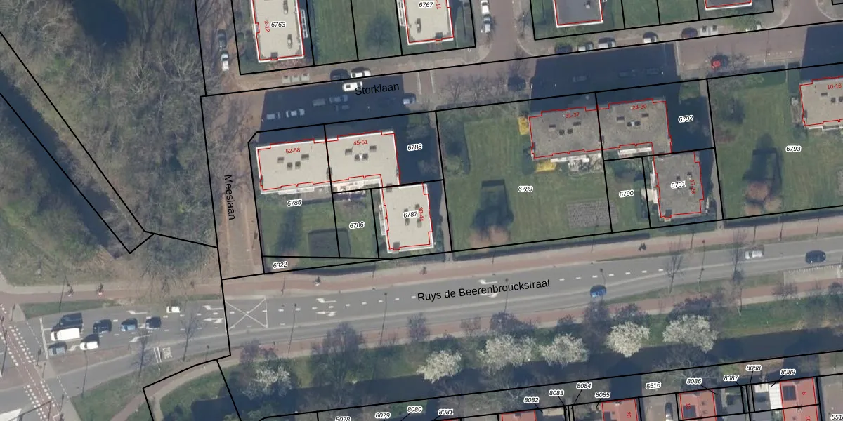 Storklaan 42 is gelegen op kadastraal perceel DEL00F6787. Deze kadastrale aanduiding is uniek en wordt gebruikt door het Kadaster om eigendomsrechten en andere zakelijke rechten vast te leggen. Het perceel maakt onderdeel uit van de kadastrale gemeente Delft.