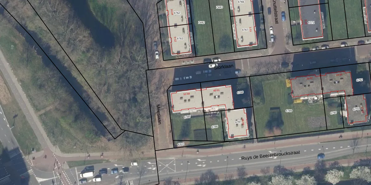 Storklaan 57 is gelegen op kadastraal perceel DEL00F6785. Deze kadastrale aanduiding is uniek en wordt gebruikt door het Kadaster om eigendomsrechten en andere zakelijke rechten vast te leggen. Het perceel maakt onderdeel uit van de kadastrale gemeente Delft.