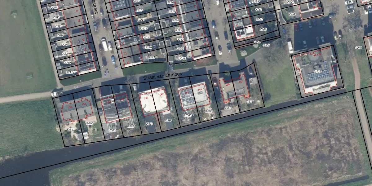 Straat van Ormoes 143 is gelegen op kadastraal perceel DEL00S2665. Deze kadastrale aanduiding is uniek en wordt gebruikt door het Kadaster om eigendomsrechten en andere zakelijke rechten vast te leggen. Het perceel maakt onderdeel uit van de kadastrale gemeente Delft.