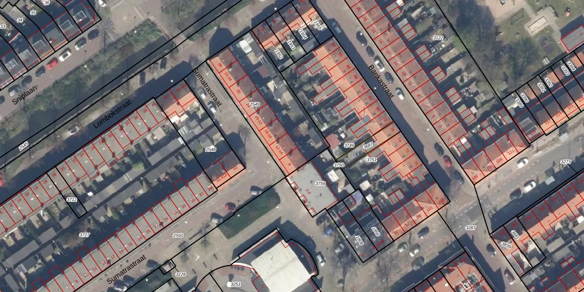 Sumatrastraat 12 is gelegen op kadastraal perceel DEL00N2549. Deze kadastrale aanduiding is uniek en wordt gebruikt door het Kadaster om eigendomsrechten en andere zakelijke rechten vast te leggen. Het perceel maakt onderdeel uit van de kadastrale gemeente Delft.