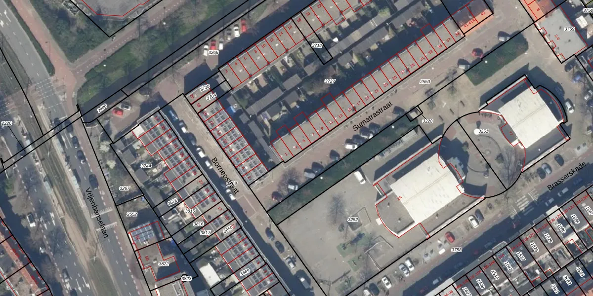 Het perceel waarop Sumatrastraat 3 staat heeft een oppervlakte van 3261 m². Dit is een zeer groot perceel. De perceeloppervlakte wordt geregistreerd door het Kadaster. Gedetailleerde informatie over de maten van dit perceel kunt u vinden in het rapport Kadastrale kaart met maatvoering van Sumatrastraat 3.