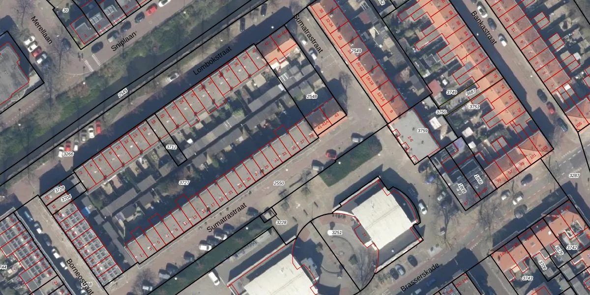 Het perceel waarop Sumatrastraat 35 staat heeft een oppervlakte van 3261 m². Dit is een zeer groot perceel. De perceeloppervlakte wordt geregistreerd door het Kadaster. Gedetailleerde informatie over de maten van dit perceel kunt u vinden in het rapport Kadastrale kaart met maatvoering van Sumatrastraat 35.