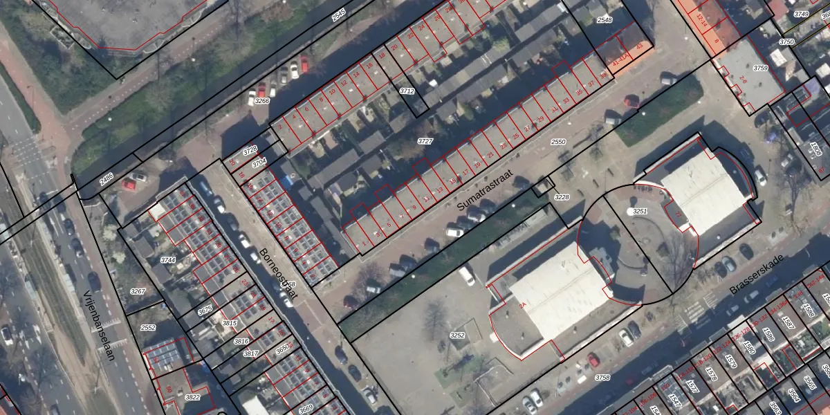 Het perceel waarop Sumatrastraat 9 staat heeft een oppervlakte van 3261 m². Dit is een zeer groot perceel. De perceeloppervlakte wordt geregistreerd door het Kadaster. Gedetailleerde informatie over de maten van dit perceel kunt u vinden in het rapport Kadastrale kaart met maatvoering van Sumatrastraat 9.