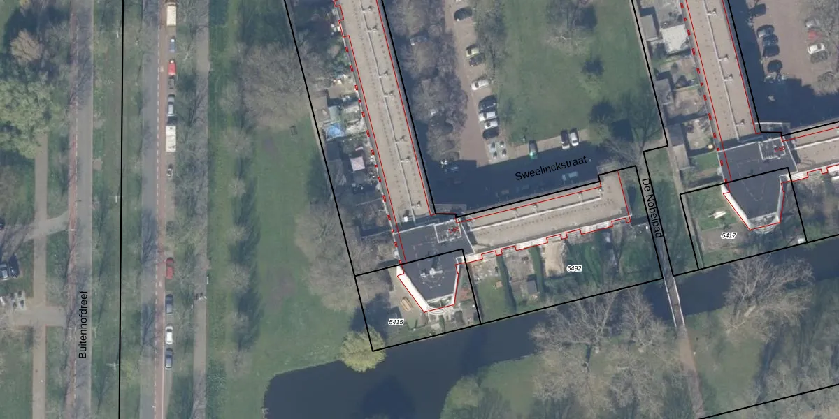Het perceel waarop Sweelinckstraat 33-A staat heeft een oppervlakte van 3035 m². Dit is een zeer groot perceel. De perceeloppervlakte wordt geregistreerd door het Kadaster. Gedetailleerde informatie over de maten van dit perceel kunt u vinden in het rapport Kadastrale kaart met maatvoering van Sweelinckstraat 33-A.