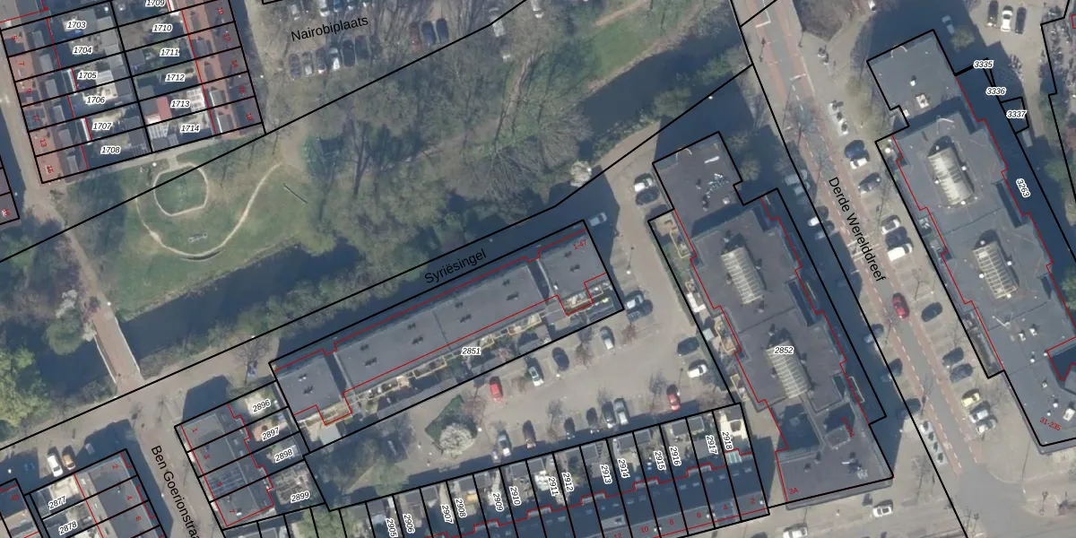 Het perceel waarop Syriësingel 13 staat heeft een oppervlakte van 1173 m². Dit is een zeer groot perceel. De perceeloppervlakte wordt geregistreerd door het Kadaster. Gedetailleerde informatie over de maten van dit perceel kunt u vinden in het rapport Kadastrale kaart met maatvoering van Syriësingel 13.
