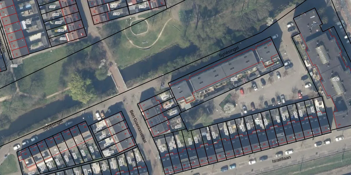 Het perceel waarop Syriësingel 47 staat heeft een oppervlakte van 1173 m². Dit is een zeer groot perceel. De perceeloppervlakte wordt geregistreerd door het Kadaster. Gedetailleerde informatie over de maten van dit perceel kunt u vinden in het rapport Kadastrale kaart met maatvoering van Syriësingel 47.