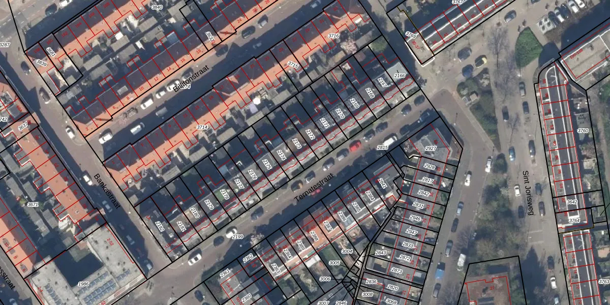 Het perceel waarop Ternatestraat 151 staat heeft een oppervlakte van 127 m². Dit is een middelgroot perceel. De perceeloppervlakte wordt geregistreerd door het Kadaster. Gedetailleerde informatie over de maten van dit perceel kunt u vinden in het rapport Kadastrale kaart met maatvoering van Ternatestraat 151.