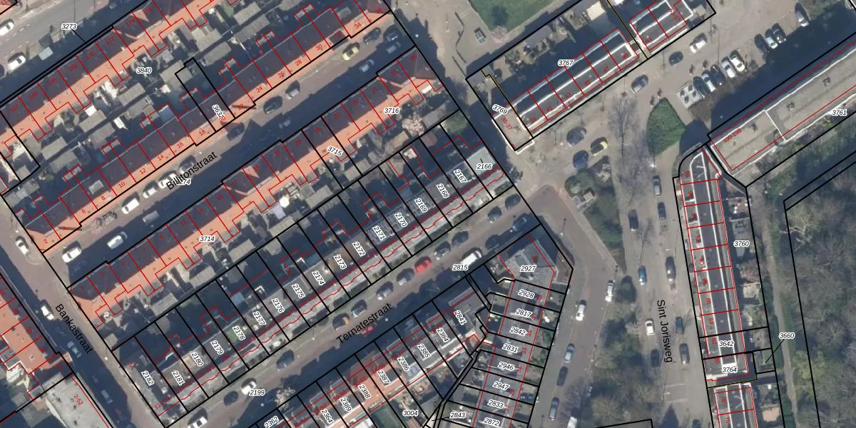 Het perceel waarop Ternatestraat 169 staat heeft een oppervlakte van 127 m². Dit is een middelgroot perceel. De perceeloppervlakte wordt geregistreerd door het Kadaster. Gedetailleerde informatie over de maten van dit perceel kunt u vinden in het rapport Kadastrale kaart met maatvoering van Ternatestraat 169.