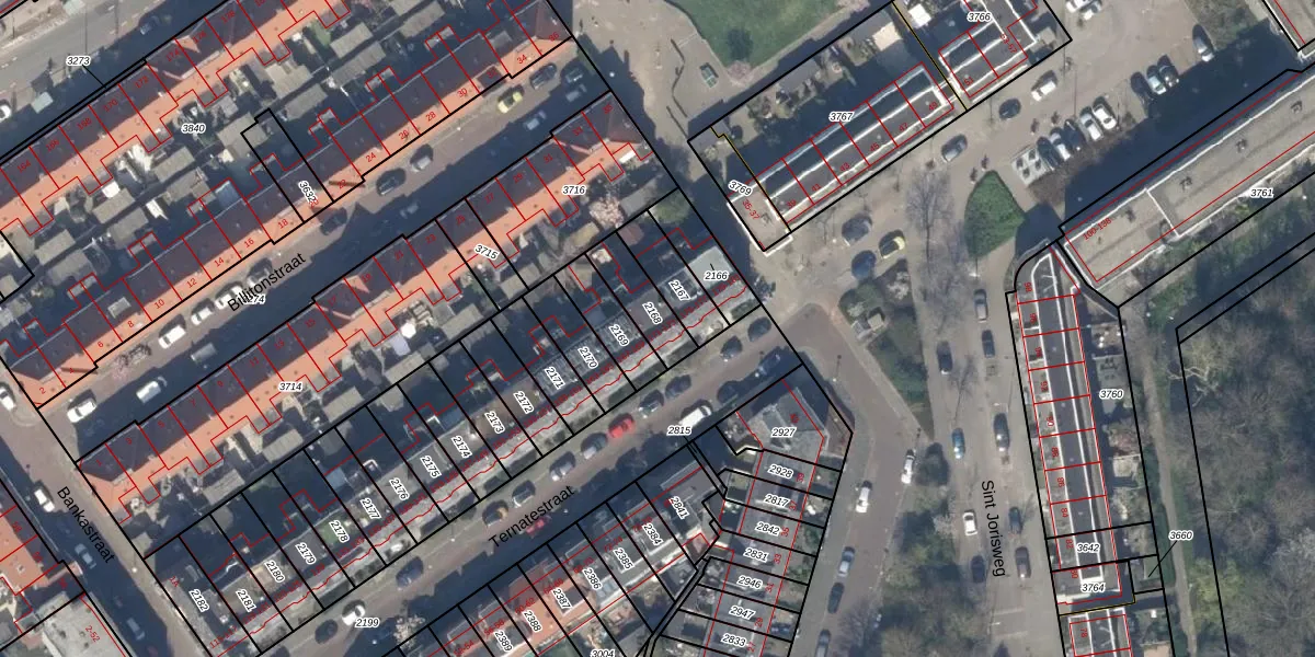 Het perceel waarop Ternatestraat 171 staat heeft een oppervlakte van 126 m². Dit is een middelgroot perceel. De perceeloppervlakte wordt geregistreerd door het Kadaster. Gedetailleerde informatie over de maten van dit perceel kunt u vinden in het rapport Kadastrale kaart met maatvoering van Ternatestraat 171.