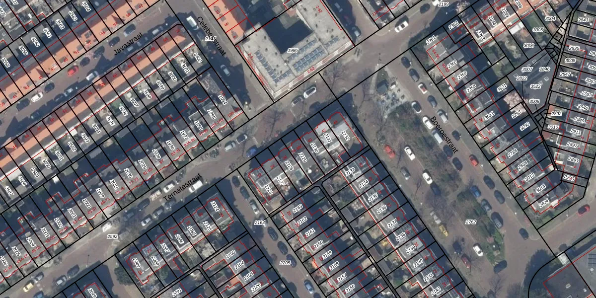 Het perceel waarop Ternatestraat 38-C staat heeft een oppervlakte van 99 m². Dit is een klein perceel. De perceeloppervlakte wordt geregistreerd door het Kadaster. Gedetailleerde informatie over de maten van dit perceel kunt u vinden in het rapport Kadastrale kaart met maatvoering van Ternatestraat 38-C.
