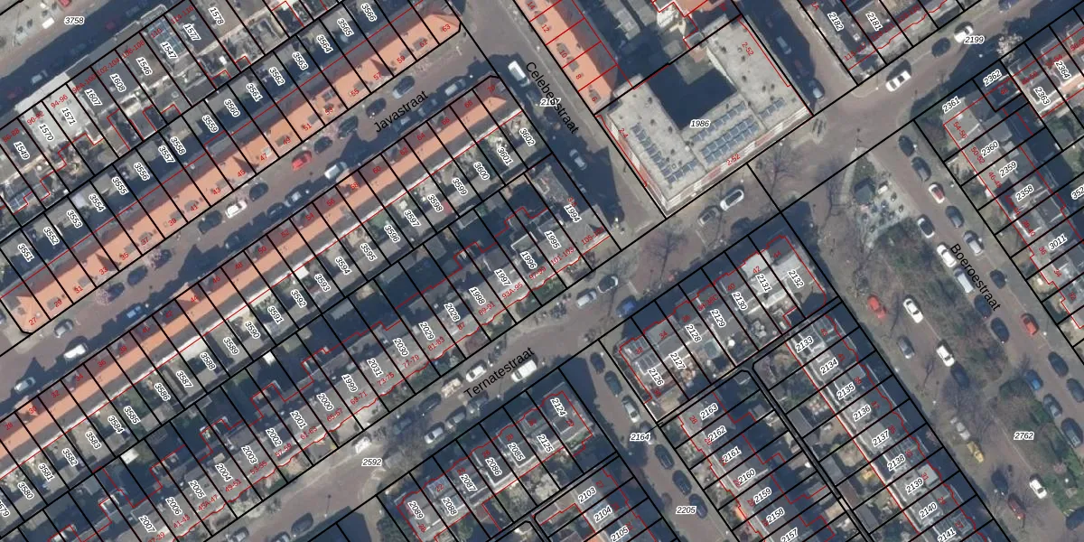 Het perceel waarop Ternatestraat 97 staat heeft een oppervlakte van 126 m². Dit is een middelgroot perceel. De perceeloppervlakte wordt geregistreerd door het Kadaster. Gedetailleerde informatie over de maten van dit perceel kunt u vinden in het rapport Kadastrale kaart met maatvoering van Ternatestraat 97.