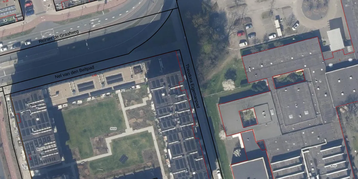 Het perceel waarop het adres ligt is DEL00-R-8668. De afkorting 'DEL00' staat voor kadastrale gemeente Delft. De gemiddelde perceeloppervlakte in de kadastrale gemeente Delft is 924,62 m². Dit perceel is met zijn 7408 m² dus groter dan gemiddeld. Het grootste perceel in de kadastrale gemeente is 64,1 ha. Het kleinste perceel heeft een oppervlakte van 0 m². Er zijn 220 adressen aanwezig op het perceel. De huidige grenzen van het perceel zijn digitaal in de Basisregistratie Kadaster (BRK) geregistreerd op 27-11-2025.