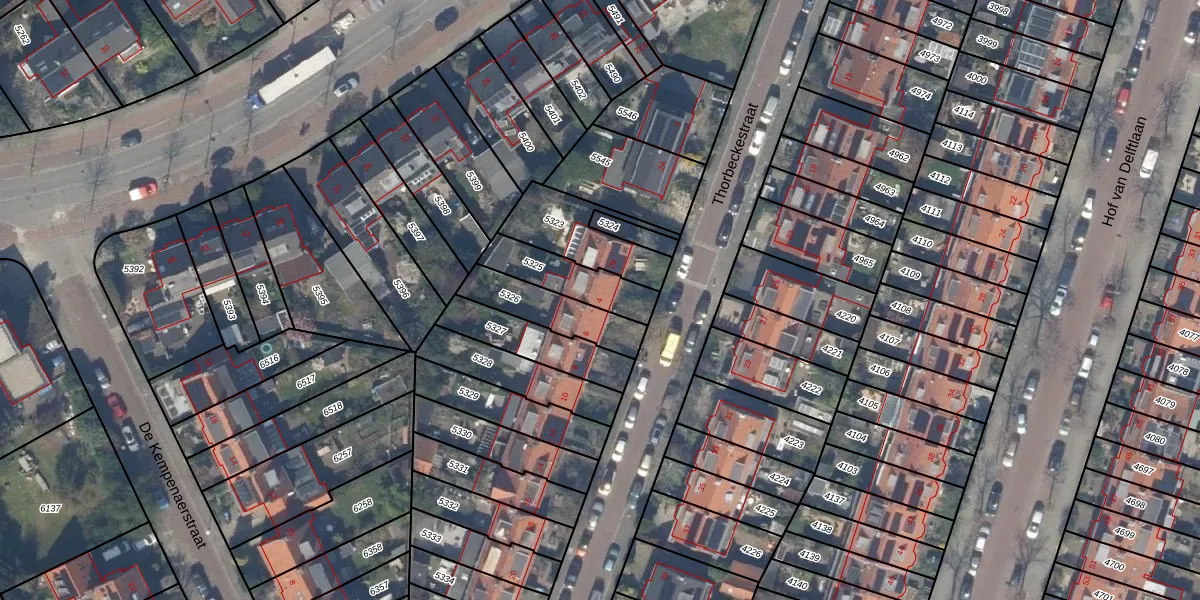 Thorbeckestraat 4 is gelegen op kadastraal perceel DEL00F5325. Deze kadastrale aanduiding is uniek en wordt gebruikt door het Kadaster om eigendomsrechten en andere zakelijke rechten vast te leggen. Het perceel maakt onderdeel uit van de kadastrale gemeente Delft.