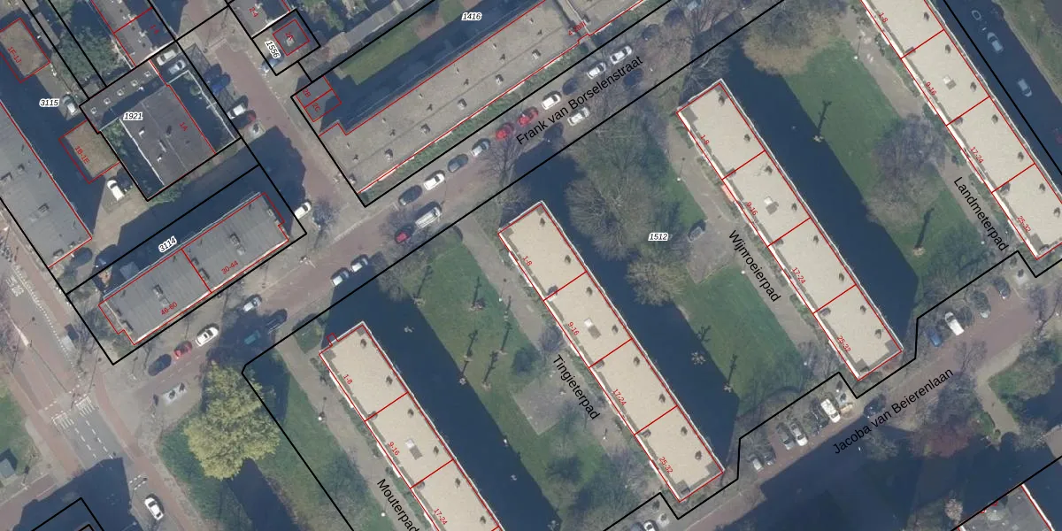 Het perceel waarop het adres ligt is DEL00-O-1512. De afkorting 'DEL00' staat voor kadastrale gemeente Delft. De gemiddelde perceeloppervlakte in de kadastrale gemeente Delft is 923,41 m². Dit perceel is met zijn 9983 m² dus groter dan gemiddeld. De grootste perceeloppervlakte in de kadastrale gemeente is 64,1 ha. De kleinste oppervlakte bedraagt 0 m². Op het perceel zijn 128 adressen aanwezig. In de Basisregistratie Kadaster (BRK) werden de grenzen van het perceel geregistreerd op 09-10-2006.