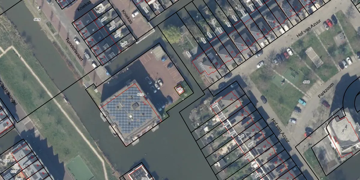 Het perceel waarop het adres ligt is DEL00-X-6273. De afkorting 'DEL00' staat voor kadastrale gemeente Delft. Het perceel is kleiner dan gemiddeld in Delft. Het perceel is 20 m² groot, terwijl het gemiddelde ligt op 924,79 m². De grootste perceeloppervlakte in de kadastrale gemeente is 64,1 ha. De kleinste oppervlakte bedraagt 0 m². Dit is het enige adres dat aanwezig is op het perceel. In de Basisregistratie Kadaster (BRK) werden de grenzen van het perceel geregistreerd op 29-05-2019.