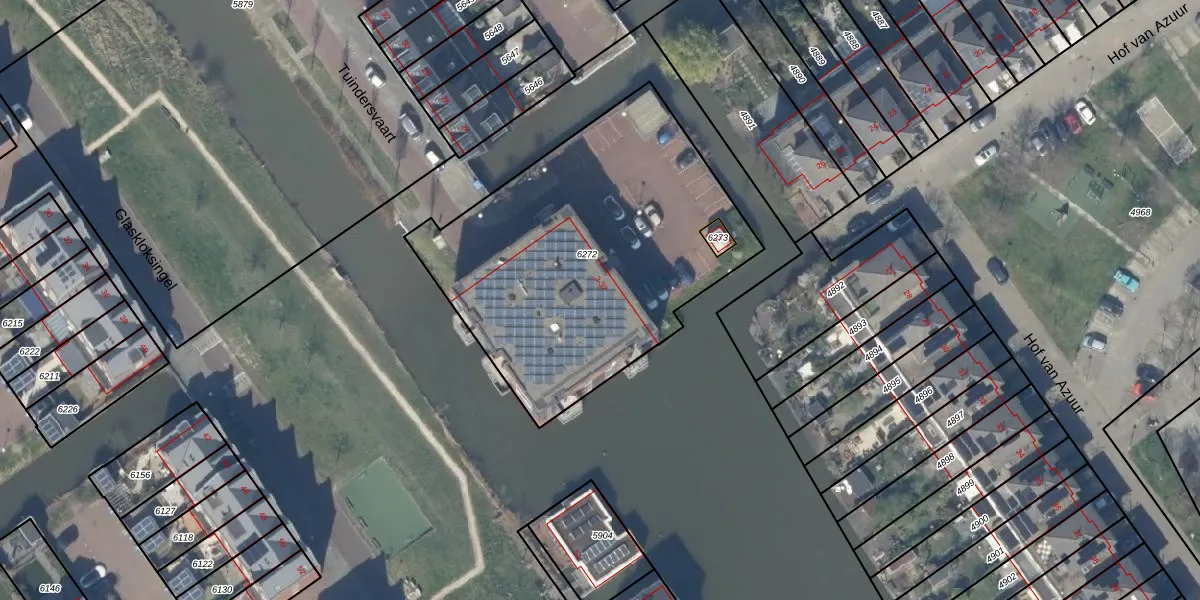 Tuindersvaart 23 is gelegen op kadastraal perceel DEL00X6272. Deze kadastrale aanduiding is uniek en wordt gebruikt door het Kadaster om eigendomsrechten en andere zakelijke rechten vast te leggen. Het perceel maakt onderdeel uit van de kadastrale gemeente Delft.
