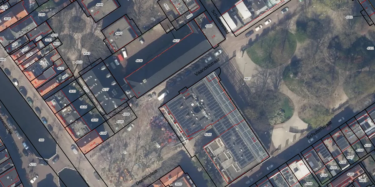 Vaandelstraat 19 is gelegen op kadastraal perceel DEL00C4265. Deze kadastrale aanduiding is uniek en wordt gebruikt door het Kadaster om eigendomsrechten en andere zakelijke rechten vast te leggen. Het perceel maakt onderdeel uit van de kadastrale gemeente Delft.