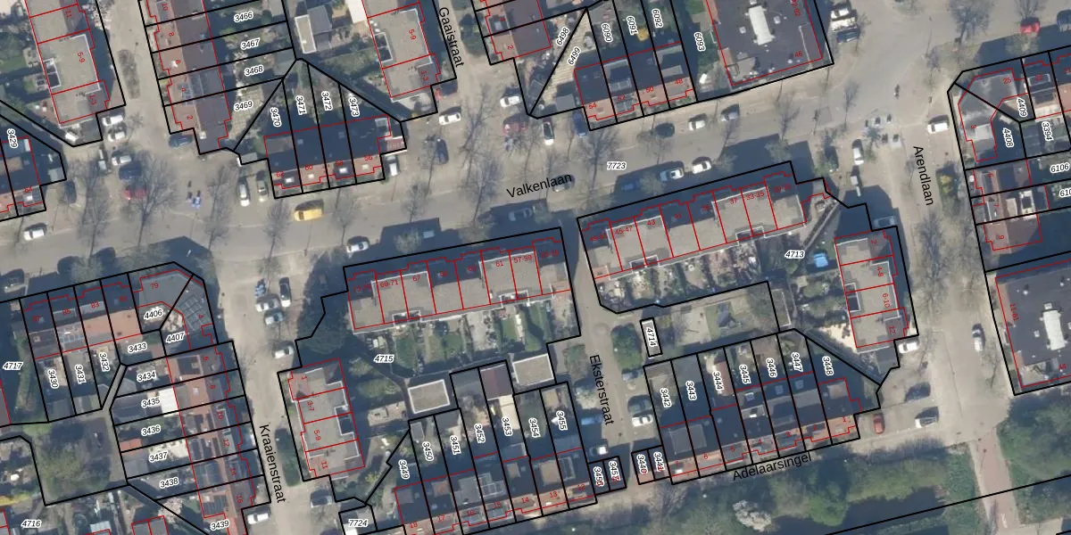 Valkenlaan 57 is gelegen op kadastraal perceel DEL00R4715. Deze kadastrale aanduiding is uniek en wordt gebruikt door het Kadaster om eigendomsrechten en andere zakelijke rechten vast te leggen. Het perceel maakt onderdeel uit van de kadastrale gemeente Delft.