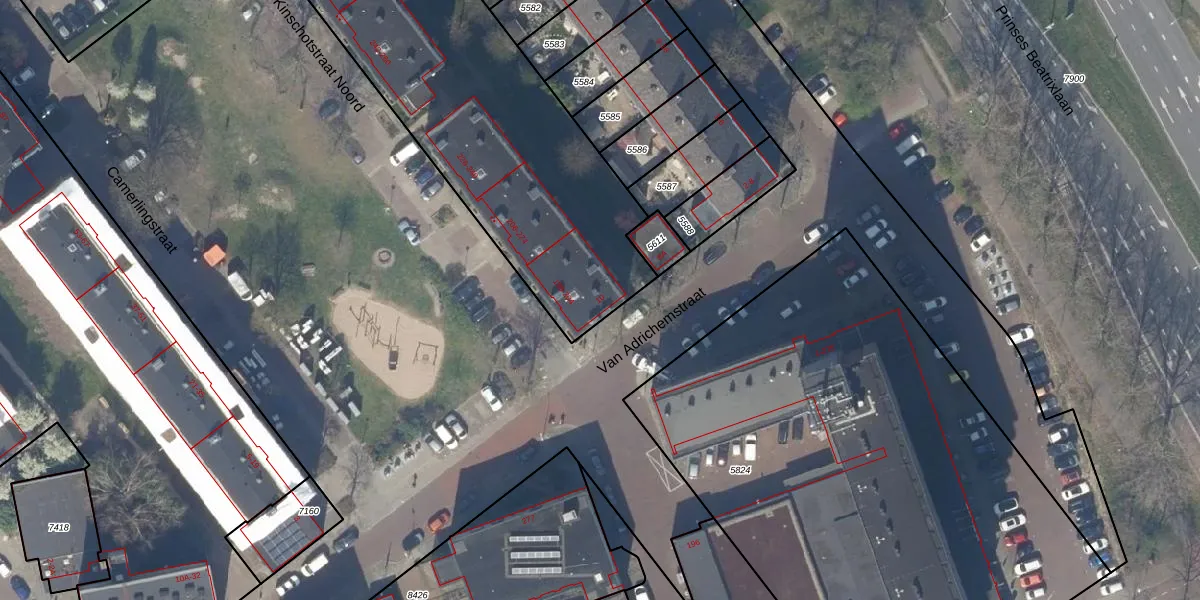 Het perceel waarop Van Adrichemstraat 10 staat heeft een oppervlakte van 3272 m². Dit is een zeer groot perceel. De perceeloppervlakte wordt geregistreerd door het Kadaster. Gedetailleerde informatie over de maten van dit perceel kunt u vinden in het rapport Kadastrale kaart met maatvoering van Van Adrichemstraat 10.