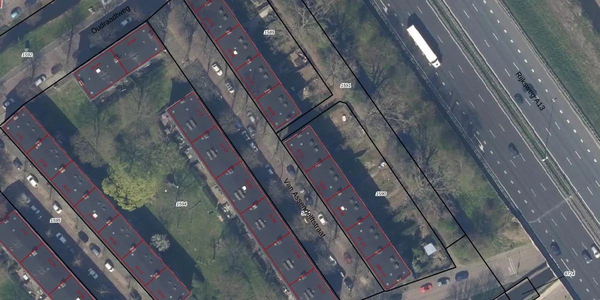 Van Assendelftstraat 65 is gelegen op kadastraal perceel DEL00P1590. Deze kadastrale aanduiding is uniek en wordt gebruikt door het Kadaster om eigendomsrechten en andere zakelijke rechten vast te leggen. Het perceel maakt onderdeel uit van de kadastrale gemeente Delft.