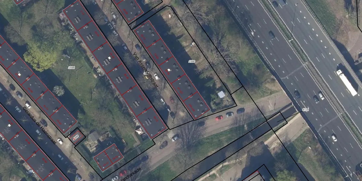 Het perceel waarop Van Assendelftstraat 97 staat heeft een oppervlakte van 1600 m². Dit is een zeer groot perceel. De perceeloppervlakte wordt geregistreerd door het Kadaster. Gedetailleerde informatie over de maten van dit perceel kunt u vinden in het rapport Kadastrale kaart met maatvoering van Van Assendelftstraat 97.