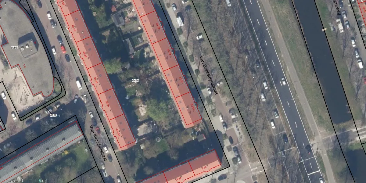 Het perceel waarop Van Beresteynstraat 13 staat heeft een oppervlakte van 7101 m². Dit is een zeer groot perceel. De perceeloppervlakte wordt geregistreerd door het Kadaster. Gedetailleerde informatie over de maten van dit perceel kunt u vinden in het rapport Kadastrale kaart met maatvoering van Van Beresteynstraat 13.