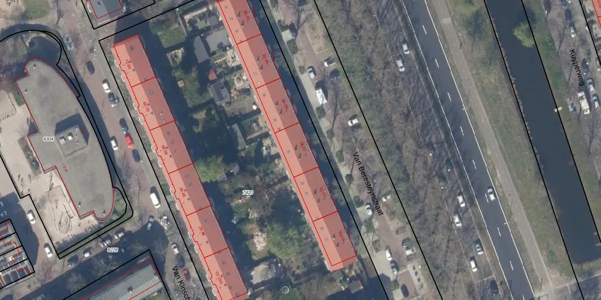 Het perceel waarop Van Beresteynstraat 21 staat heeft een oppervlakte van 7101 m². Dit is een zeer groot perceel. De perceeloppervlakte wordt geregistreerd door het Kadaster. Gedetailleerde informatie over de maten van dit perceel kunt u vinden in het rapport Kadastrale kaart met maatvoering van Van Beresteynstraat 21.