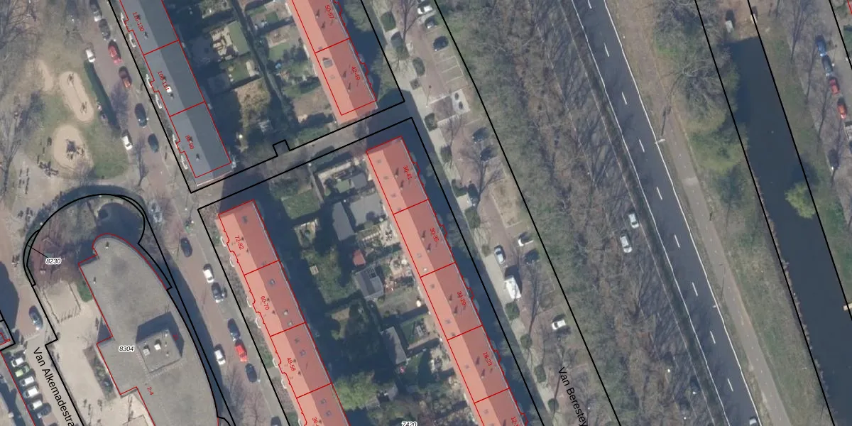 Het perceel waarop Van Beresteynstraat 34 staat heeft een oppervlakte van 7101 m². Dit is een zeer groot perceel. De perceeloppervlakte wordt geregistreerd door het Kadaster. Gedetailleerde informatie over de maten van dit perceel kunt u vinden in het rapport Kadastrale kaart met maatvoering van Van Beresteynstraat 34.