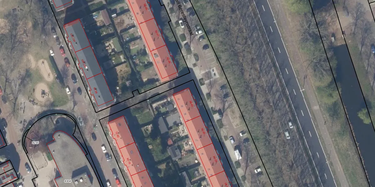 Het perceel waarop Van Beresteynstraat 40 staat heeft een oppervlakte van 7101 m². Dit is een zeer groot perceel. De perceeloppervlakte wordt geregistreerd door het Kadaster. Gedetailleerde informatie over de maten van dit perceel kunt u vinden in het rapport Kadastrale kaart met maatvoering van Van Beresteynstraat 40.