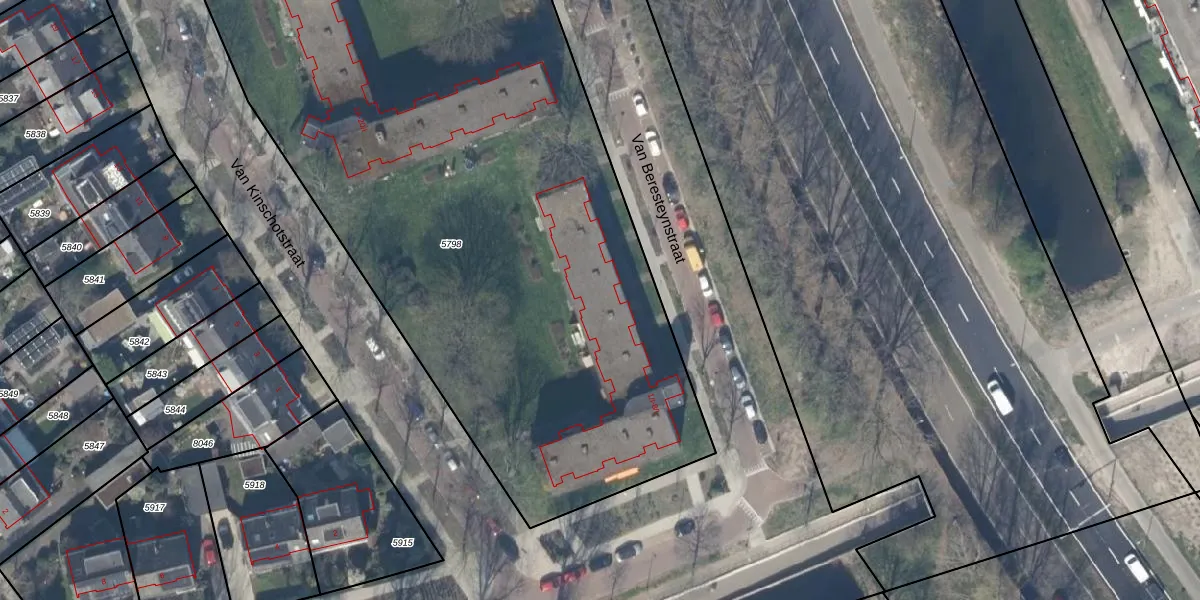 Het perceel waarop Van Beresteynstraat 6-I staat heeft een oppervlakte van 5338 m². Dit is een zeer groot perceel. De perceeloppervlakte wordt geregistreerd door het Kadaster. Gedetailleerde informatie over de maten van dit perceel kunt u vinden in het rapport Kadastrale kaart met maatvoering van Van Beresteynstraat 6-I.