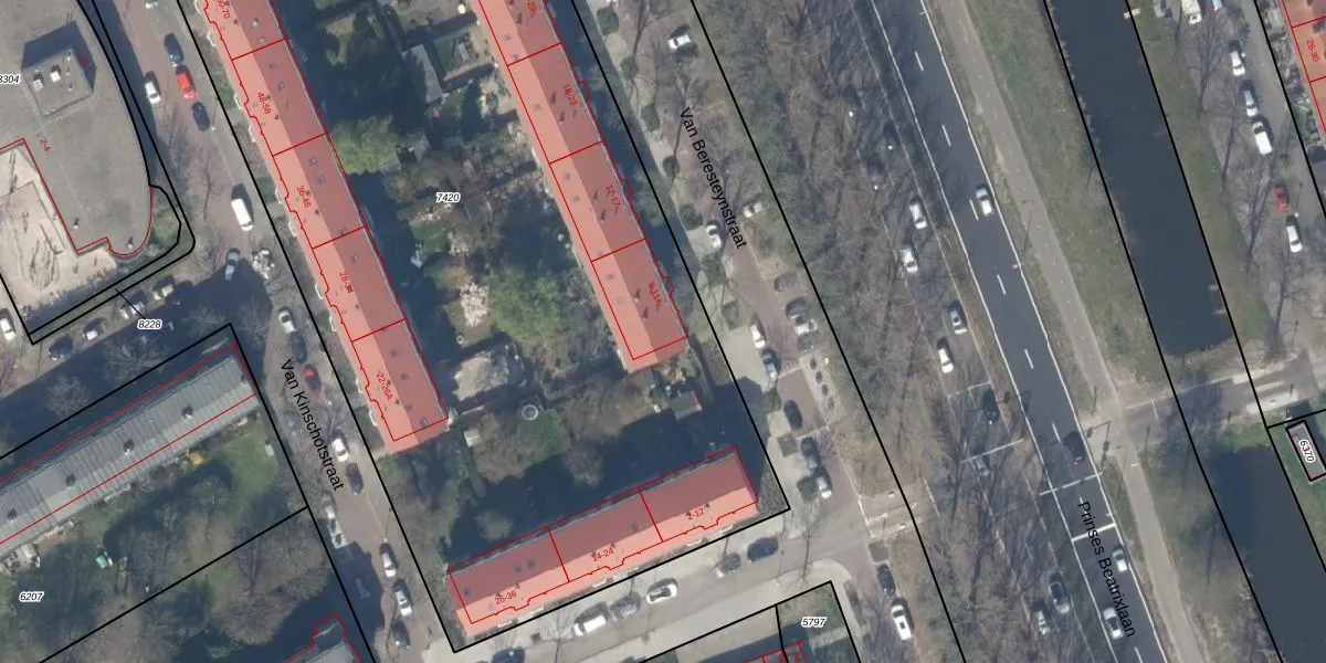 Het perceel waarop Van Beresteynstraat 9-A staat heeft een oppervlakte van 7101 m². Dit is een zeer groot perceel. De perceeloppervlakte wordt geregistreerd door het Kadaster. Gedetailleerde informatie over de maten van dit perceel kunt u vinden in het rapport Kadastrale kaart met maatvoering van Van Beresteynstraat 9-A.