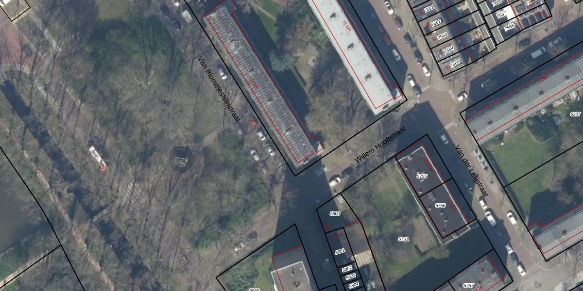 Het perceel waarop Van Blommesteinstraat 2-A staat heeft een oppervlakte van 9755 m². Dit is een zeer groot perceel. De perceeloppervlakte wordt geregistreerd door het Kadaster. Gedetailleerde informatie over de maten van dit perceel kunt u vinden in het rapport Kadastrale kaart met maatvoering van Van Blommesteinstraat 2-A.
