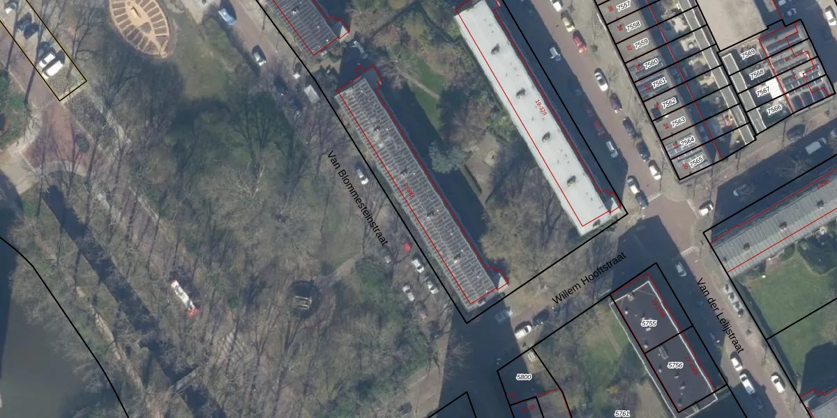 Het perceel waarop Van Blommesteinstraat 6 staat heeft een oppervlakte van 9755 m². Dit is een zeer groot perceel. De perceeloppervlakte wordt geregistreerd door het Kadaster. Gedetailleerde informatie over de maten van dit perceel kunt u vinden in het rapport Kadastrale kaart met maatvoering van Van Blommesteinstraat 6.