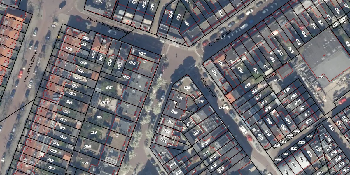 Het perceel waarop het adres ligt is DEL00-F-8472. De afkorting 'DEL00' staat voor kadastrale gemeente Delft. De gemiddelde perceelgrootte in Delft is 923,41 m². Dit perceel is kleiner: de perceeloppervlakte bedraagt 126 m². Het grootste perceel in de kadastrale gemeente is 64,1 ha. Het kleinste perceel heeft een oppervlakte van 0 m². Op het perceel zijn 2 adressen aanwezig. In de Basisregistratie Kadaster (BRK) werden de grenzen van het perceel geregistreerd op 07-10-2020.