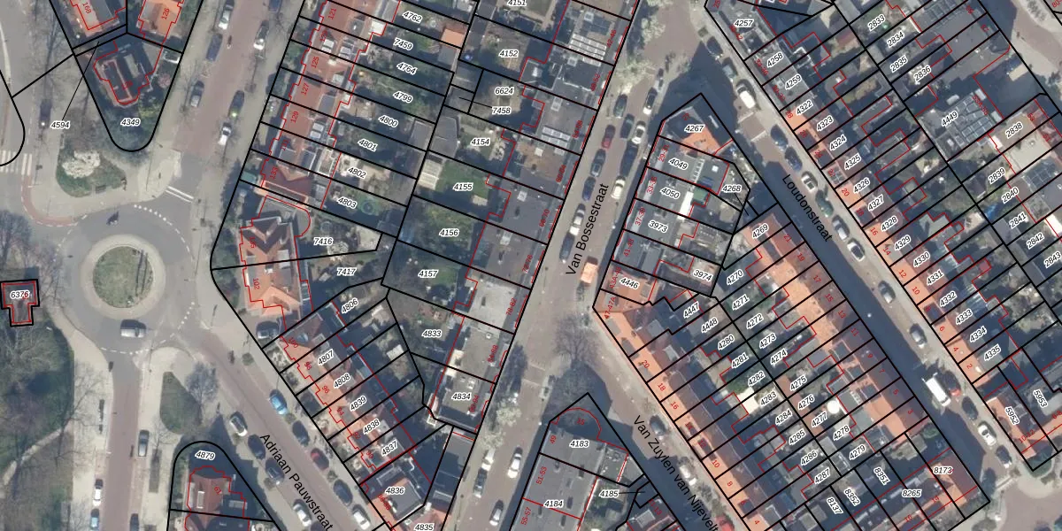 Van Bossestraat 74 is gelegen op kadastraal perceel DEL00F4156. Deze kadastrale aanduiding is uniek en wordt gebruikt door het Kadaster om eigendomsrechten en andere zakelijke rechten vast te leggen. Het perceel maakt onderdeel uit van de kadastrale gemeente Delft.