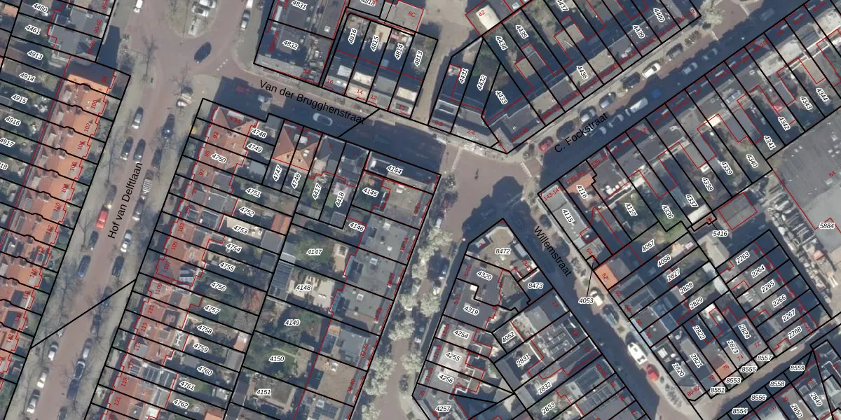 Van Bossestraat 8 is gelegen op kadastraal perceel DEL00F4145. Deze kadastrale aanduiding is uniek en wordt gebruikt door het Kadaster om eigendomsrechten en andere zakelijke rechten vast te leggen. Het perceel maakt onderdeel uit van de kadastrale gemeente Delft.
