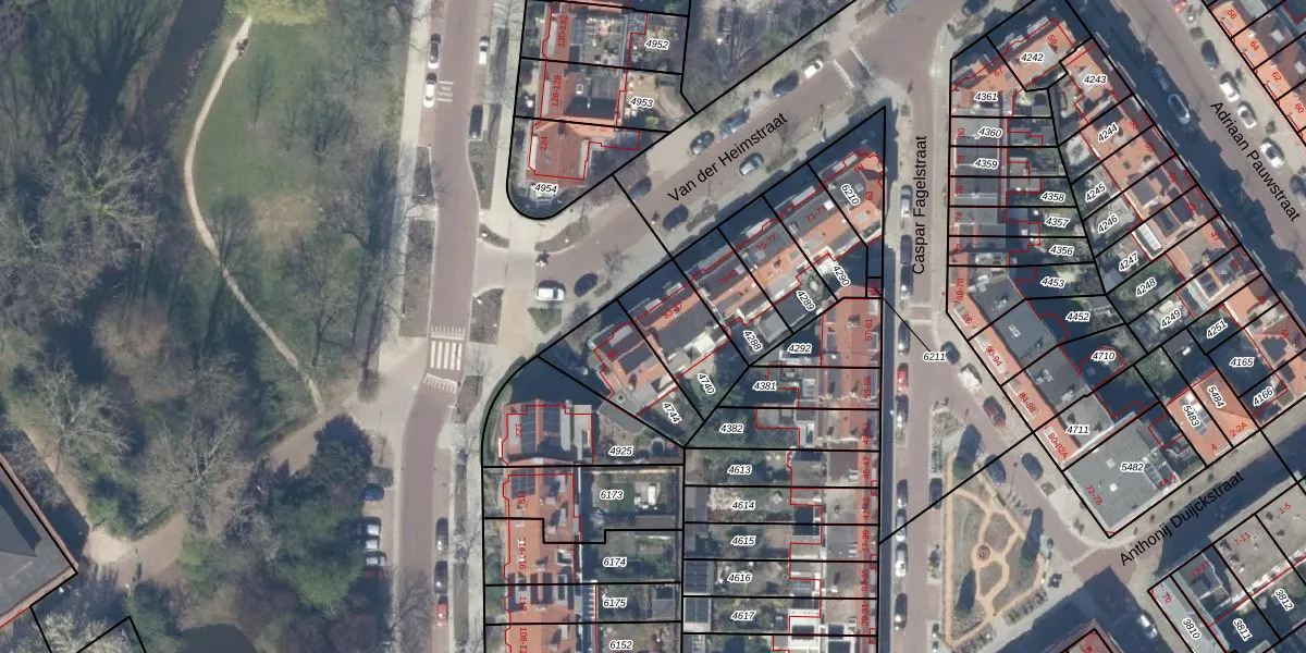 Van der Heimstraat 87 is gelegen op kadastraal perceel DEL00F4740. Deze kadastrale aanduiding is uniek en wordt gebruikt door het Kadaster om eigendomsrechten en andere zakelijke rechten vast te leggen. Het perceel maakt onderdeel uit van de kadastrale gemeente Delft.