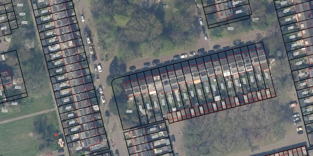 Van der Kamlaan 18 is gelegen op kadastraal perceel DEL00R2025. Deze kadastrale aanduiding is uniek en wordt gebruikt door het Kadaster om eigendomsrechten en andere zakelijke rechten vast te leggen. Het perceel maakt onderdeel uit van de kadastrale gemeente Delft.