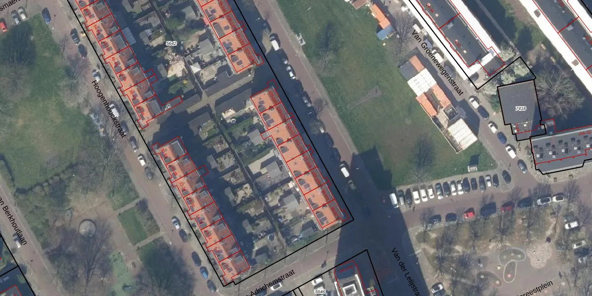Het perceel waarop Van der Lelijstraat 113 staat heeft een oppervlakte van 5670 m². Dit is een zeer groot perceel. De perceeloppervlakte wordt geregistreerd door het Kadaster. Gedetailleerde informatie over de maten van dit perceel kunt u vinden in het rapport Kadastrale kaart met maatvoering van Van der Lelijstraat 113.