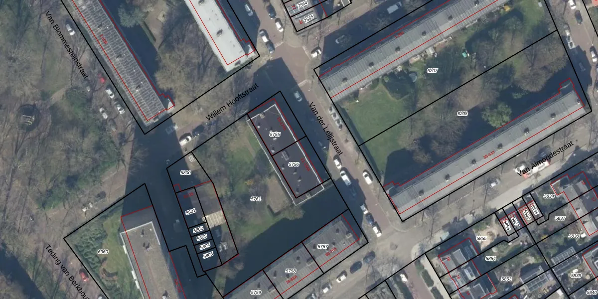 Het perceel waarop Van der Lelijstraat 13 staat heeft een oppervlakte van 218 m². Dit is een middelgroot perceel. De perceeloppervlakte wordt geregistreerd door het Kadaster. Gedetailleerde informatie over de maten van dit perceel kunt u vinden in het rapport Kadastrale kaart met maatvoering van Van der Lelijstraat 13.