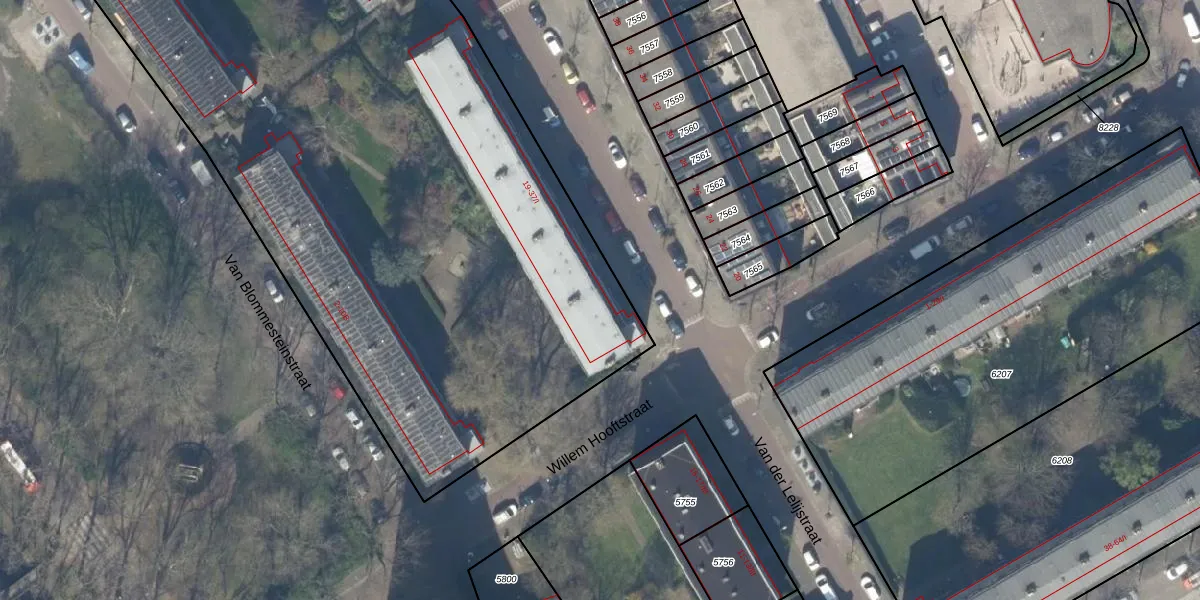 Het perceel waarop Van der Lelijstraat 21 staat heeft een oppervlakte van 9755 m². Dit is een zeer groot perceel. De perceeloppervlakte wordt geregistreerd door het Kadaster. Gedetailleerde informatie over de maten van dit perceel kunt u vinden in het rapport Kadastrale kaart met maatvoering van Van der Lelijstraat 21.