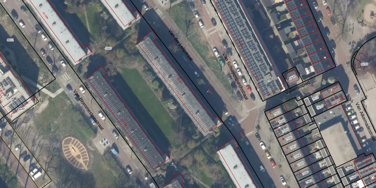Het perceel waarop Van der Lelijstraat 45-I staat heeft een oppervlakte van 9755 m². Dit is een zeer groot perceel. De perceeloppervlakte wordt geregistreerd door het Kadaster. Gedetailleerde informatie over de maten van dit perceel kunt u vinden in het rapport Kadastrale kaart met maatvoering van Van der Lelijstraat 45-I.