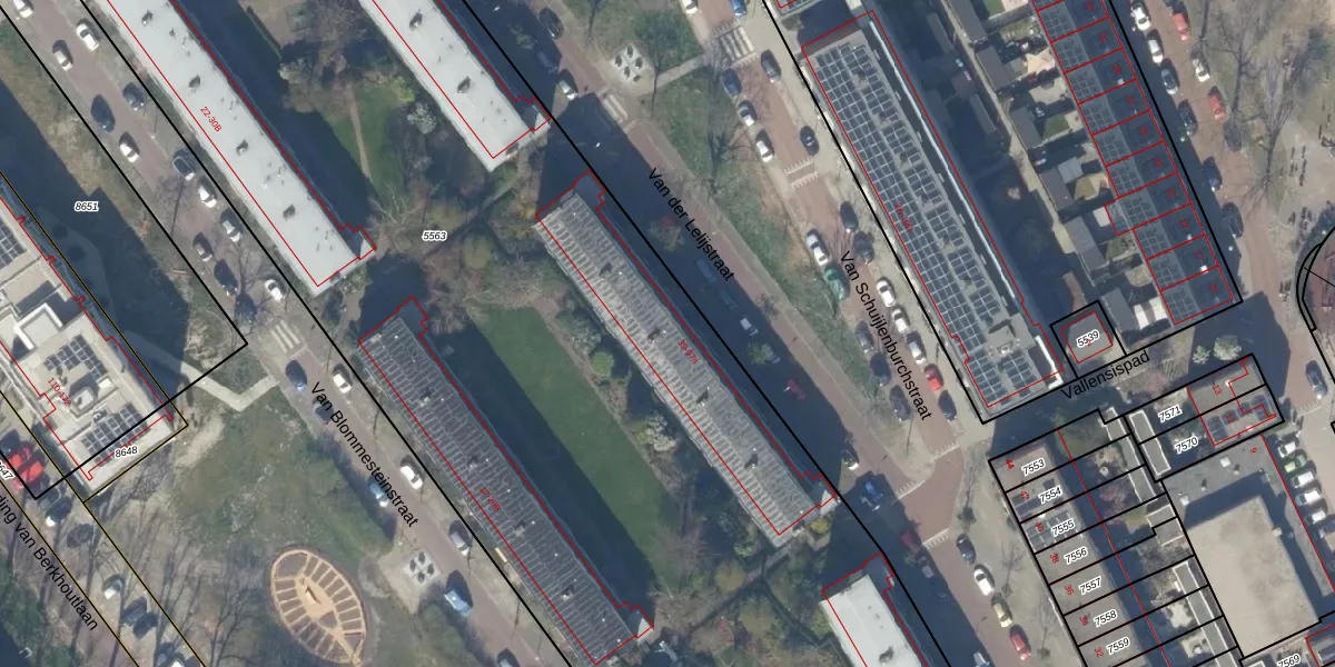 Het perceel waarop Van der Lelijstraat 49-I staat heeft een oppervlakte van 9755 m². Dit is een zeer groot perceel. De perceeloppervlakte wordt geregistreerd door het Kadaster. Gedetailleerde informatie over de maten van dit perceel kunt u vinden in het rapport Kadastrale kaart met maatvoering van Van der Lelijstraat 49-I.